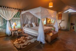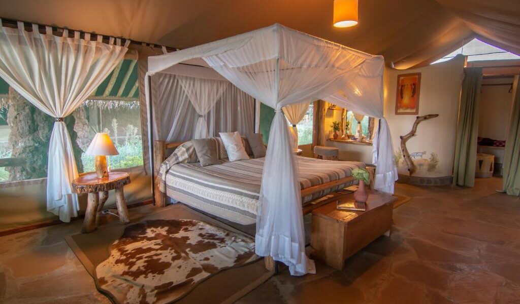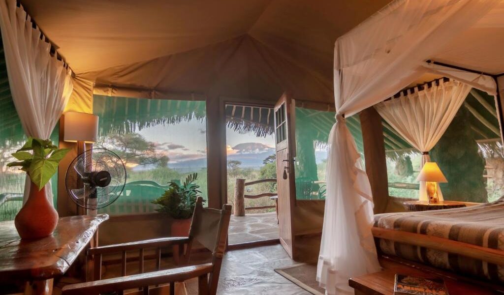 - päev – hotellist võetakse pärast hommikusööki peale (grupis kuni 8 inimest) ja algab sõit Amboseli rahvusparki, kus peale hotelli sisseregistreerimist toimub esimene safari, et teha tutvust loomade ja loodusega. Öö veedetakse rahvuspargi juures olevas luksuskhotellis Kibo Safari Camp, kust avaneb hea vaade Kilimanjarole. Majutus on kas kõigi mugavustega (sh Dušinurk) glämping stiili safaritelgis või väikeses majakeses.