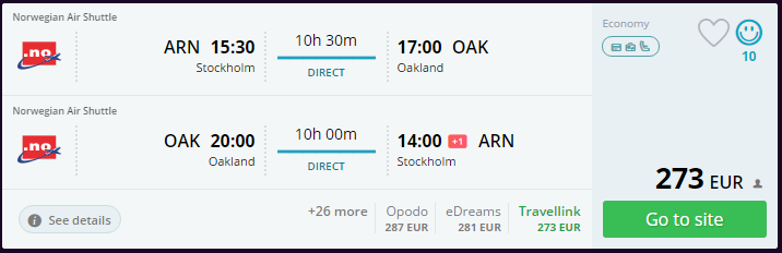- Broneeri piletid suunal Stockholm – San Francisco – Stockholm 4 – 14.03 (4. märts kell 15:30 väljalend, tagasi jõuab 15. märts kell 14:00) SIIT (273€)