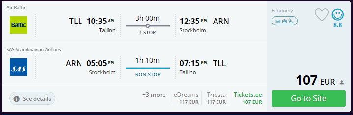 - Broneeri pilet suunal Tallinn – Stockholm – Tallinn (4. märts kell 10:35 – 12:35, tagasilend 15. märts kell 17:05– 19:15) SIIT (107€)