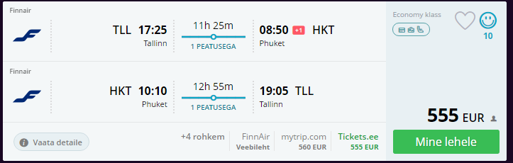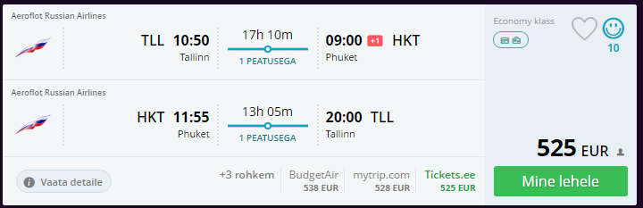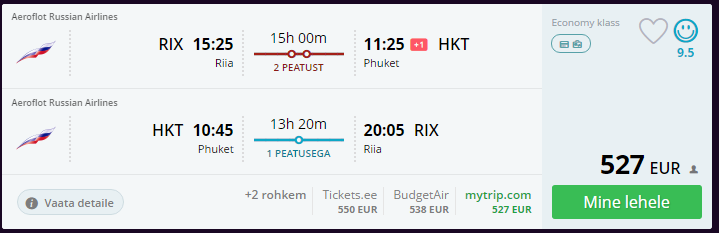 Lennufirmad Aeroflot ja Finnair pakuvad soodsaid lende järgmise aasta kevadeks Tallinnast ja Riiast Phuketisse. Edasi-tagasi lennud alates 523 eurost!