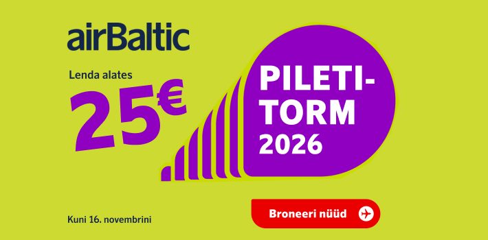 Algas airBalticu kampaania Piletitorm 2026, mille raames tasub tormi joosta 2026. aasta lennupiletitele, sest nende hinnad on tulnud alla. Lendude algavad 25 eurost suund.
