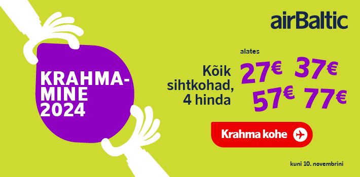 airBalticu 2024. aasta lendude krahmamiskampaania lõpeb reede südaöösel! Edasi-tagasi lennupiletite diilid algusega Tallinnast al 27eurost. Kuna paljud soodushinnaga piletid on välja müüdud, siis lisas airBaltic uusi soodushinnaga pileteid juurde teatud sihtkohtadele. Seega hea võimalus neile, kes varaseamalt jäid soovitud piletitest ilma!