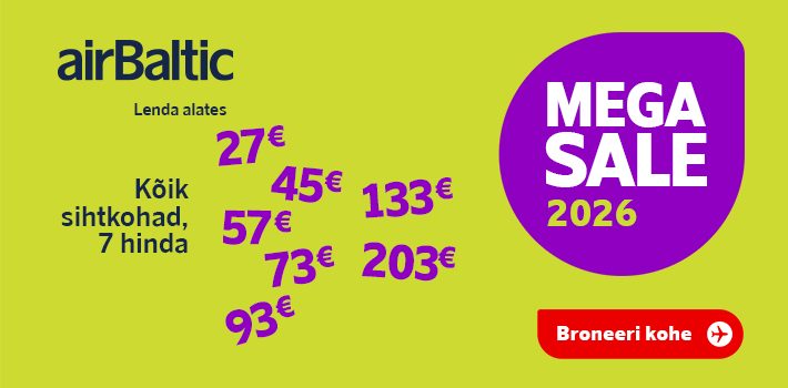 Algas airBalticu uue aasta esimene Mega Sale kampaania, mis kestab seekord 27. jaanuarini. Nii Tallinnast kui ka Riiast algavad kampaania raames lennud 27 eurost. Hinnad on jagatud seekord kategooriatesse: näiteks algusega Riiast on kokku kuus erinevat hinnakategooriat, Tallinnast seitse. Rohkem infot allpool.