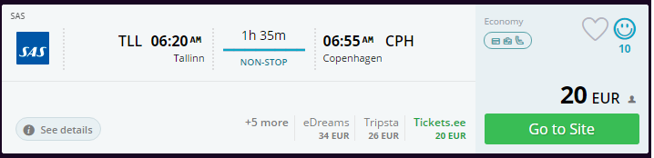 - Broneeri lennupiletid Tallinn – Copenhagen (11. aprill kell 06:20 – 06:55) SIIT (20€)