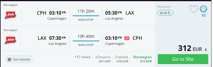 - Broneeri lennupiletid Copenhagen – Los Angeles – Copenhagen 11 – 25. aprill (11. aprill kell 15:10 väljalend, jõuab tagasi Kopenhaagenisse 26. aprill kell 15:10) SIIT (312€)