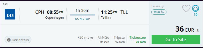 - Broneeri lennupiletid Copenhagen – Tallinn (26. aprill 20:55 – 23:25) SIIT (36€)