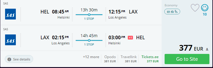 Lennufirma SAS pakub hetkel soodsaid lennupileteid Helsingist USA läänerannikule Los Angelesse. Edasi-tagasi lennupiletid saab soetada hinnaga alates 377 eurost!