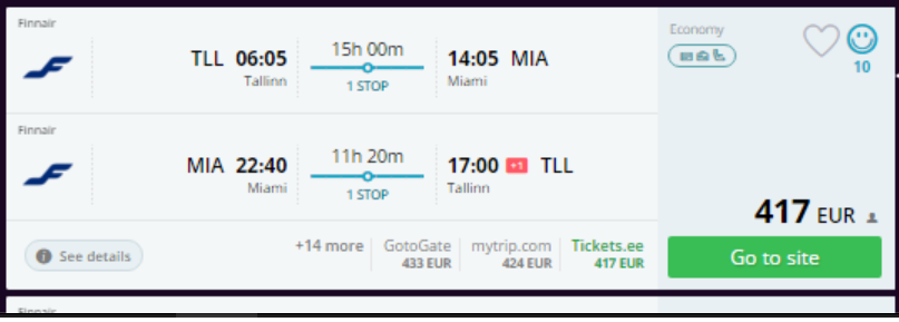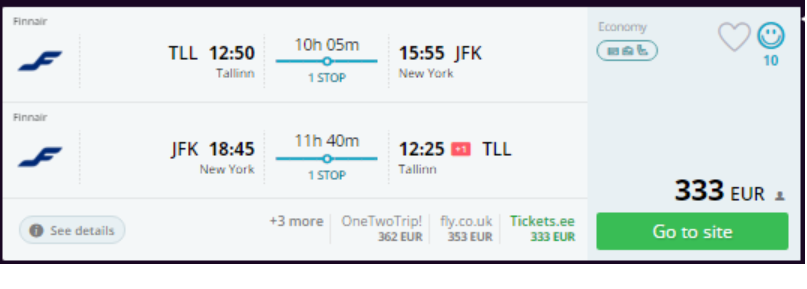 Lennufirmad Finnair ja British Airways pakuvad soodsaid lennupileteid USA idarannikule New Yorki ja Miamisse. Lennupiletid alguse ja lõpuga Tallinnast alates 333 eurost! Pileteid leidub jaanuarist maini.