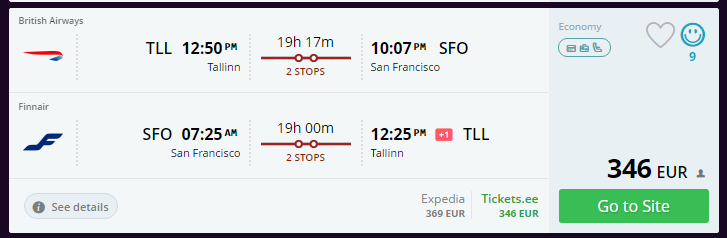 British Airways ja Finnair pakuvad soodsaid lennupileteid Tallinnast Ameerika läänerannikule San Franciscosse 343 euroga!
