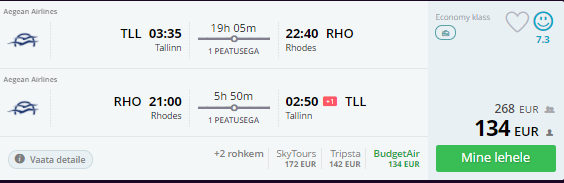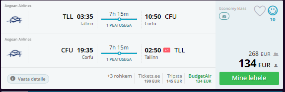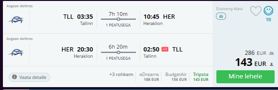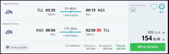 Sügisel saab hea hinnaga lennata Tallinnast Aegean Airlinesega Kreeka erinevatele saartele. Paljudel kuupäevadel on soodsama hinnaga piletitel päevane ümberistumine Ateenas, mille raames on võimalik ka Kreeka pealinnaga tutvust teha.