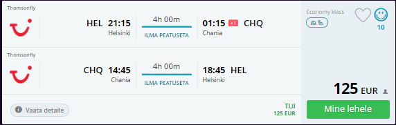 Tallinnast reisides sobivad laevaajad lennuaegadega. Leht on soomekeelne, seega vajadusel kasuta google translate abi! Hinnas sisaldub käsipagas.