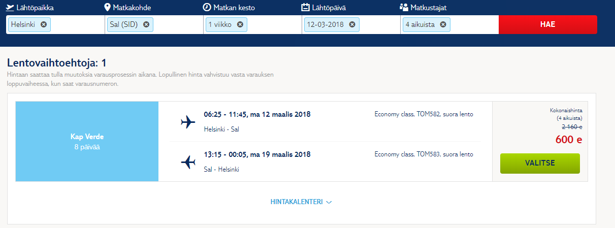 Sõltuvalt läbimüügist võivad hinnad tõusta, langeda või piletid otsa lõppeda. Hinna sees on käsipagas. 09.03 kell 14:20 seisuga on saadaval 6+ kohta.