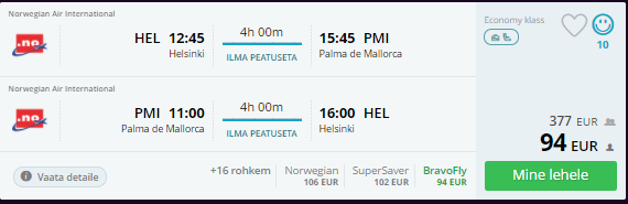 Hind sisaldab käsipagasit. Loe abimeest lennupiletite broneerimisel Momondo kohta SIIT