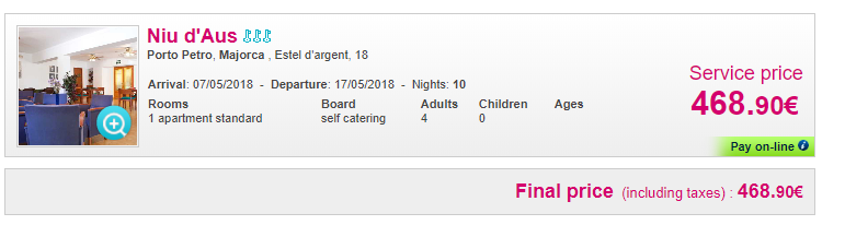 Näiteks 7 – 17. mai saab hea hinnaga ööbida 3* hotellis Niu d’Aus stars, mis asub rannast 500 meetri kaugusel. Apartmendi hind 10 ööks tuleb ca 469 eurot. Vaata lähemalt SIIT