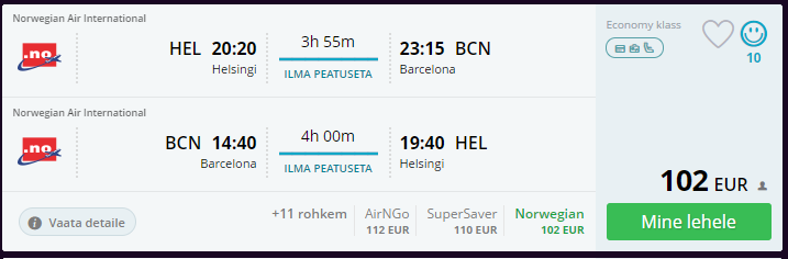 Näidiskuupäevad lendamiseks Barcelonasse 102€: