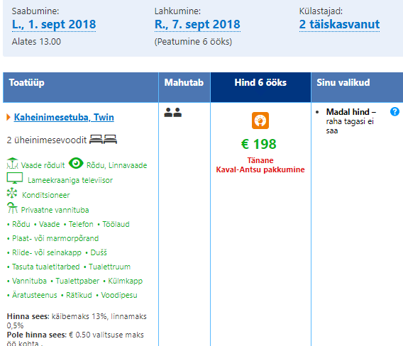 Hinnale lisandub kohalik turismimaks.