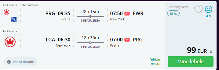 Saadaval on väga soodsa hinnaga lennupiletid erinevates Euroopa linnadest USAsse ja Kanadasse hinnaga alates 99 eurost! Tegemist on veahinnaga, mistõttu tasub huvi korral kiirustada! Pileteid leidub lendamiseks septembrist kuni järgmise aasta juunini.