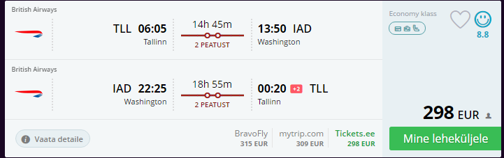 Teatud kuupäevadel maksab kiiremate ümberistumisega reis ca 10-15 eurot rohkem.