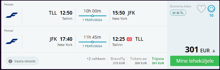 Näidiskuupäevad lendamiseks (kliki linkil) New Yorki: