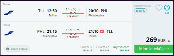 Näidiskuupäevad lendamiseks (kliki linkil) Philadelphiasse: