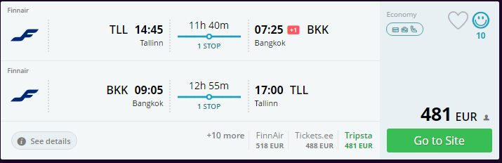 Finnair pakub soodsaid ja mugavaid lennupileteid Tai pealinna Bangkokki. Edasi-tagasi lennupiletid algusega Tallinnast 475 eurot, Tartust 490 eurot! Tai kõrghooajaks peetakse perioodi novembrist märtsini.