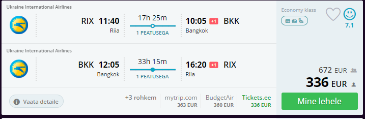 Vaikevalikus on hind kahele. Jätkulende Bangkokist Phuketisse, Krabile, Koh Samuile ja mujale vaata Momondost. Hinna sees on nii käsi- kui põhipagas.