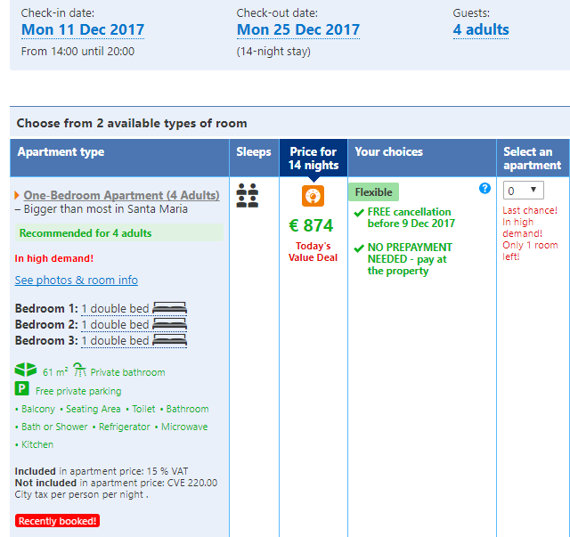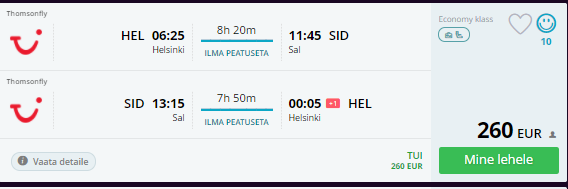 Majutuse hinnale lisandub kohapeal tasutav turismimaks 220 CVE päevas (ca 2 eurot) inimese kohta.