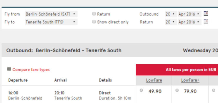 Berliin – Tenerife (50€) [16:00 – 20:10]