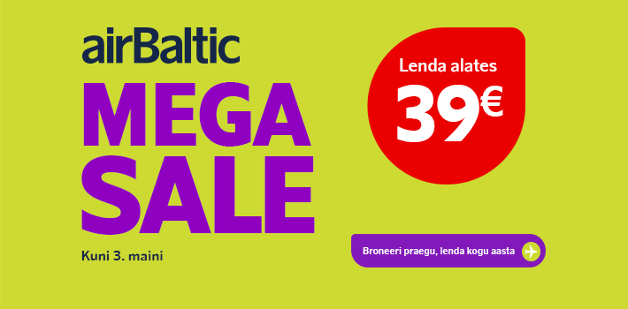 Algas airBalticu kampaania Mega Sale. Nii Tallinnast kui ka Riiast algavad kampaania raames lennud 39 eurost suund. Kampaania on hea võimalus soetada eelkõige suveks ja suvepikenduseks lendusid soodsa hinnaga. Allpool oleme välja toonud mõned kampaaniahindade näited.