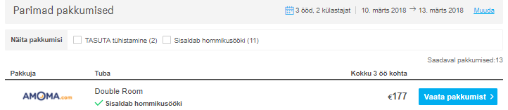 Hinnad põhinevad 02.03 kl 10:00 seisuga ja võivad ajas muutuda.
