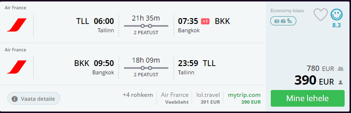 Hetkel saab osta soodsalt lende sügishooajaks Taisse: nimelt KLM/Air France lennud Tallinnast algavad 393 eurost!