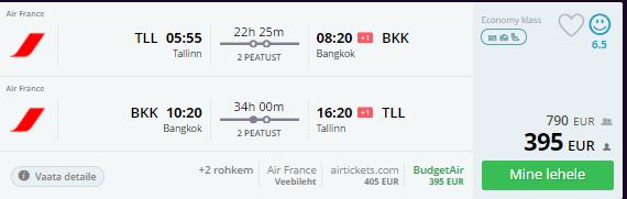 KLM/Air France lennud Tallinnast Bangkokki algavad 395 eurost!