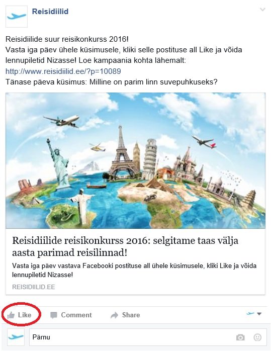 NB! Et osaleda Nizza piletite loosimisel, tuleb nominatsiooni lisamise järel kinnitada enda soovi osaleda loosimisel klikates postituse juures LIKE nuppu. Mida rohkematele kategooriatele omapoolse nominatsiooni esitad, seda suurem võimalus on võita!