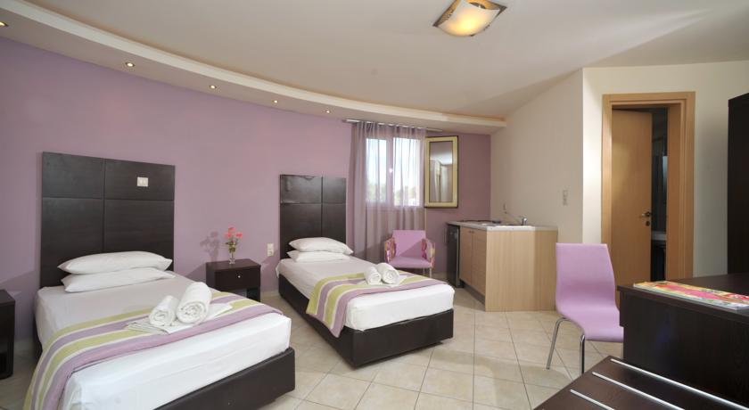 Majutus toimub rannahotellis Island Beach Resort, mis asub ranna ääres. Kaugus kuurordi keskusest on umbes 150 m (Kavos). Hotelli ei soovitata peredele lastega vanuses alla 12 aasta.
