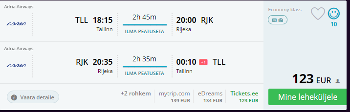 Nordica avalennu eripakkumine: edasi-tagasi suvine otselend Tallinnast Aadria mere sadamalinna Rijekasse (Horvaatia) 123 eurot!