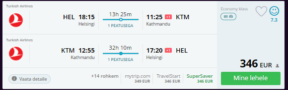 Lennufirma Turkish Airlines pakub Helsingist soodsaid lende Himaalaja mäestiku jalusel asuvasse Katmandusse Nepalis.