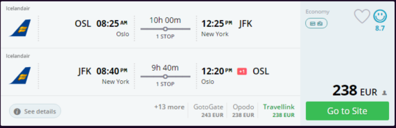 Lennufirma Icelandair pakub soodsaid lennupileteid Oslost USA idarannikule New Yorki hinnaga alates 238 eurost! Pileteid leidub lendamiseks septembrist oktoobrini.