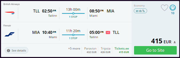 Lennufirmad Britsh Airways ja Finnair pakuvad soodsaid pileteid marsruudil Tallinn – New York – Tallinn alates 374 eurost ja Tallinn – Miami – Tallinn alates 413 eurost!