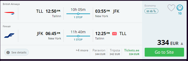 Põhjanaabrite lennufirma Finnair koostöös British Airwaysiga pakuvad väga soodsaid lennupileteid Tallinnast USA idarannikule New Yorki hinnaga alates 334 eurost! Pileteid leidub märtsist maini.