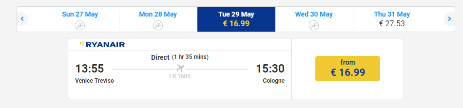 29.05 Venice – Cologne [13:55 – 15:30] 17€