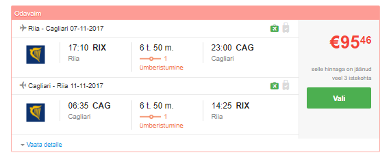 Sügiseks leiab soodsaid lennupileteid külastamaks Vahemere ja Itaalia suuruselt teist saart, Sardiiniat (Itaalia) alguse ja lõpuga Riiast alates 82 euro eest!