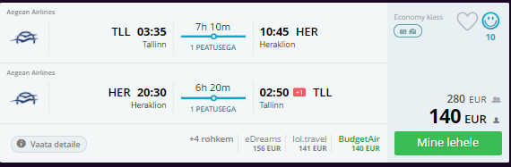 Näidiskuupäevad lendamiseks Heraklioni lennujaama: