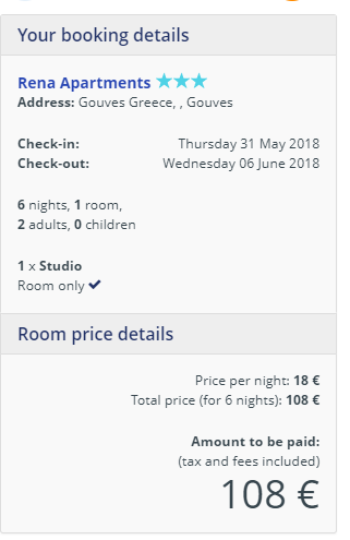 Soodsalt saab ööbida 3* hotellis Rena Apartments, mis asub asub Gouves. Randa on 900 meetrit. Lähedal on ka supermarket. Kahe toa hind näiteks 31.05 – 06.06 maksab 96 eurot ehk ca 48 eurot inimese kohta. Vaata lähemalt SIIT