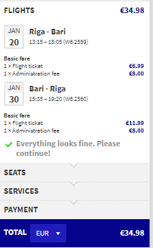 Näidiskuupäevad lendamiseks Riiast Barisse ja tagasi (vali Momondost Wizzairi koduleht, kust leiad kõige soodsamad hinnad):