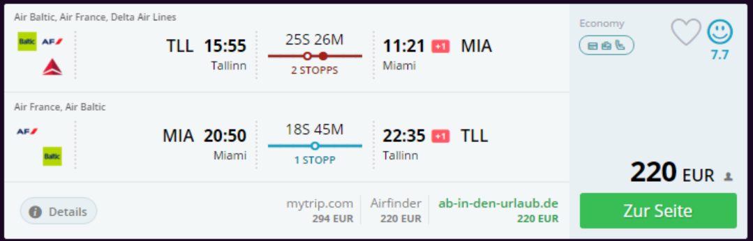 Lennufirma KLM ja Air France pakuvad megasoodsaid pileteid marsruudil Tallinn – Miami – Tallinn 220 eurot! Pileteid leidub lendamiseks sügisel.