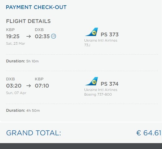 Kiiev-Dubai-Kiiev lennud: