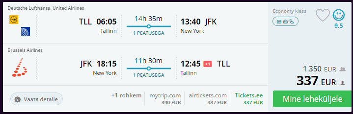 Hinnas sisaldub lisaks käsipagasile ka põhipagas. Hea hinnaga lennupileteid leidub augustist detsembrini. Ca 12 eurot kallima hinnaga leidub ka kiirema ümberistumisega lennupileteid.