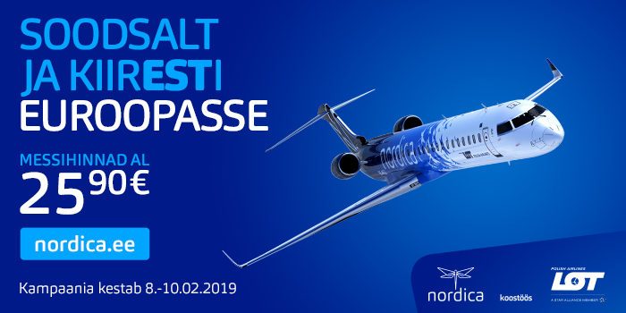 Kodumaine lennufirma Nordica koostöös LOTiga pakub Touresti raames väga mõnusa hinnaga lendusid Euroopasse ja kaugemalegi. Lennud (üks ots) algavad 25,90 eurost.