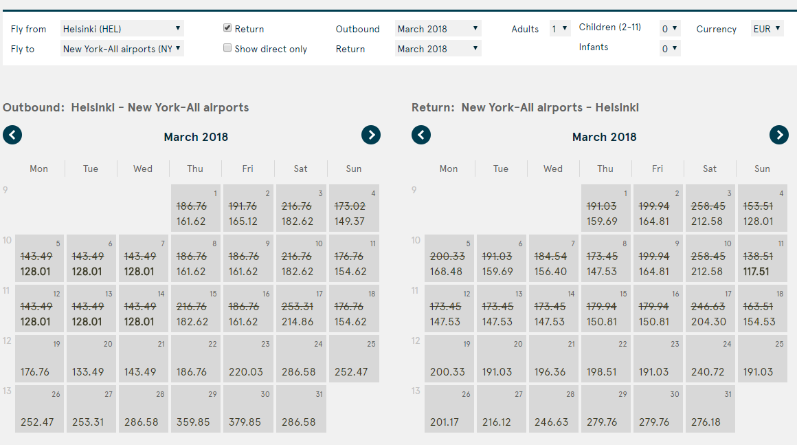 Helsingi – New York – Helsingi 7 – 25. veebruar 235€