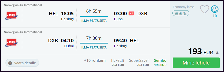 Norwegian pakub soodsaid otselende Helsingist Dubaisse alates 193 eurost!